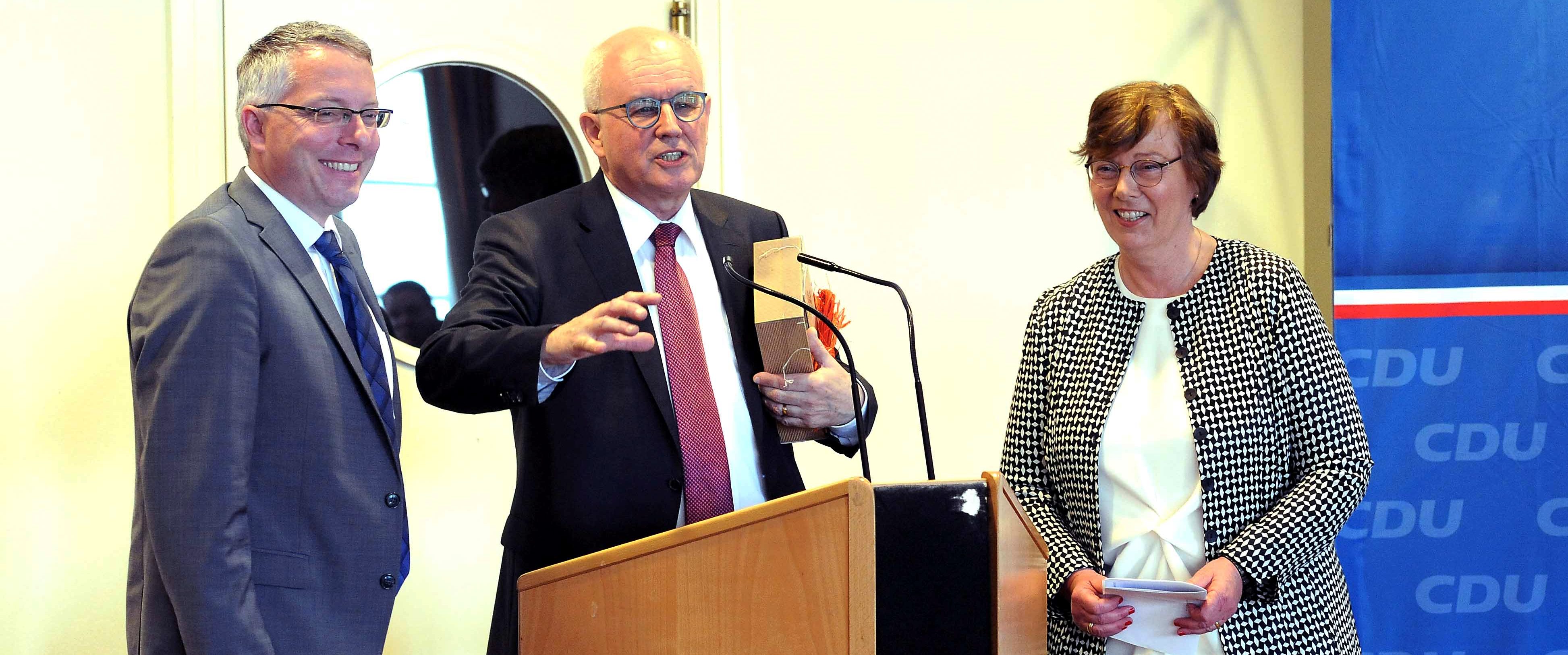 "Wir Christdemokraten sind Pragmatiker. Wir wollen Probleme lösen. Deshalb gehören wir auch in die Regierung, und nicht in die Opposition!" - Volker Kauder, Vorsitzender der CDU/CSU-Bundestagsfraktion begeisterte heute in Flensburg sein Publikum mit klaren Aussagen zu aktuellen Themen der Politik. So prangerte er die Defizite der Albig-Regierung an, was Straßenbau und Kommunalfinanzen, Kriminalitätsaufklärung oder die Abschiebepraxis anbelangen.