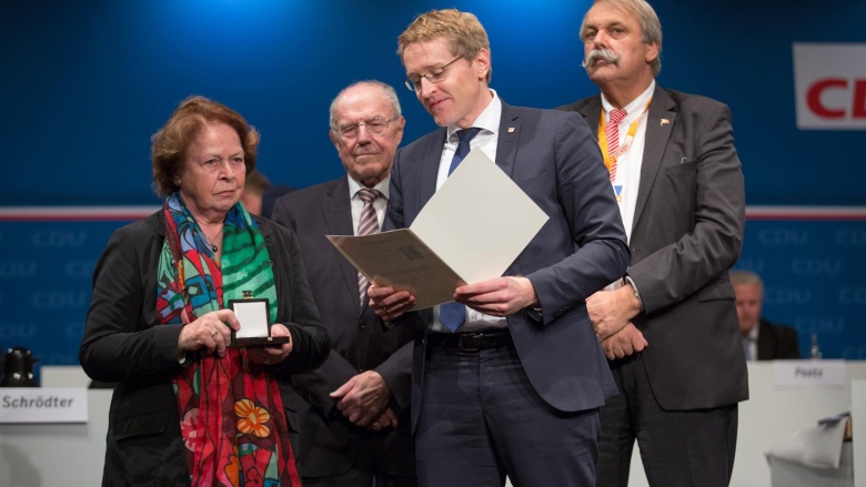 „Timm Hollmann, Hubert Priemel und Brita Schmitz-Hübsch haben sich in besonderer Weise verdient gemacht. Die CDU Schleswig-Holstein ist der Ansicht, dass dieses besondere Engagement die Würdigung mit der Gerhard-Stoltenberg-Medaille verdient“, so Daniel Günther vor knapp 400 CDU-Mitgliedern bei der Ehrung auf dem Landesparteitag.