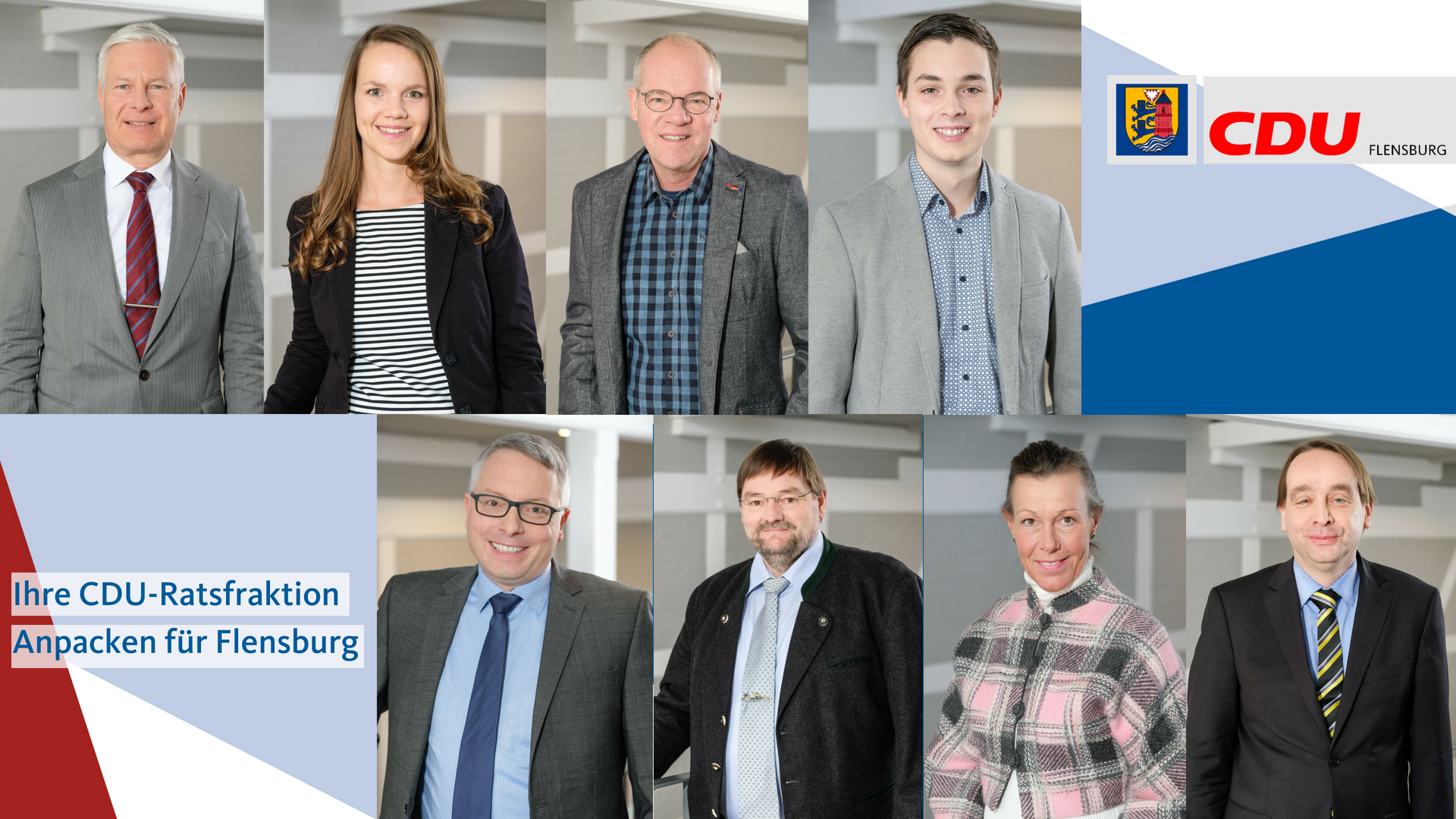 Die CDU-Fraktion hat sich neu aufgestellt. Der Wahlausschuss der Stadt Flensburg bestätigte am Mittwoch das Ergebnis der Kommunalwahl vom 6. Mai; damit ist die CDU mit künftig acht Mandaten in der Flensburger Ratsversammlung vertreten, die alle direkt gewonnen wurden.