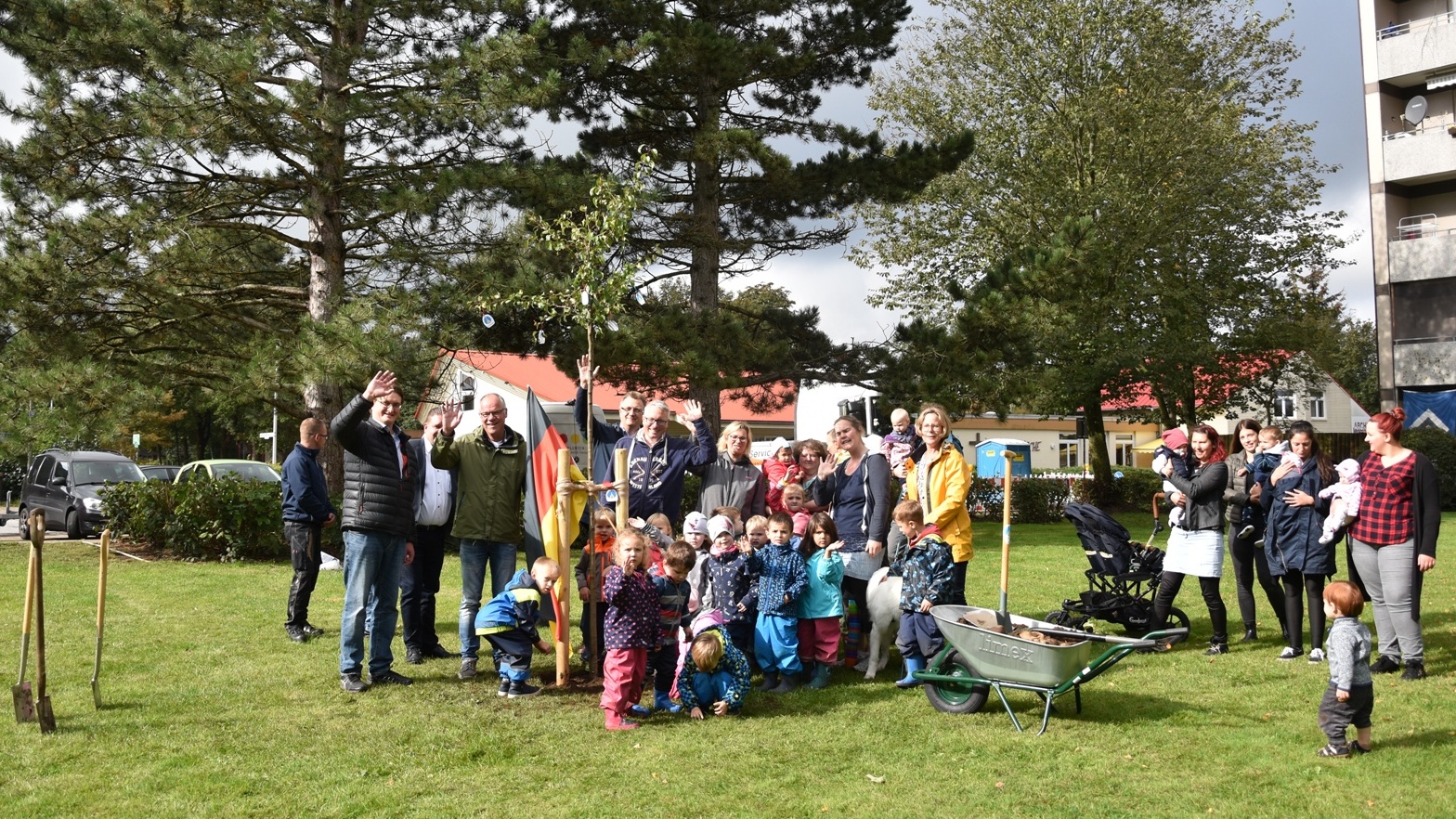 Noch vor dem Tag der Deutschen Einheit hat sich auch die Flensburger CDU mit Kindern der KiTa „Arche Kunterbunt“ sowie Vertretern und Eltern vom Schutzengel e. V. zu einer Baumpflanzaktion in Flensburg-Weiche eingefunden.