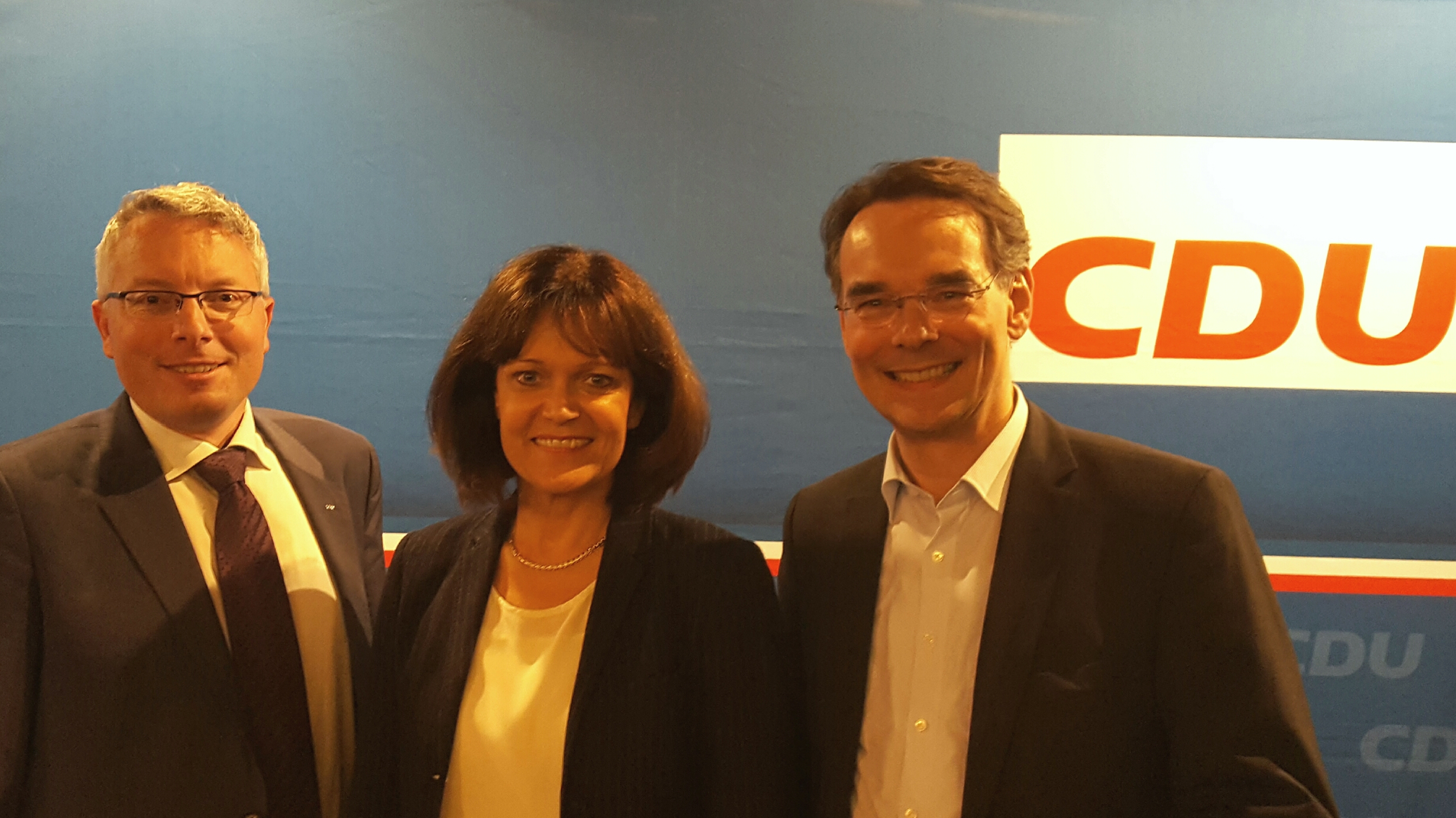 Steigende Immobilienpreise, angemessene Infrastruktur, demographischer Wandel – die Themen der Diskussion mit der Präsidentin des Deutschen Städtetags, Dr. Eva Lohse, waren vielfältig. Lohse war am Donnerstag auf Einladung der CDU Schleswig-Holstein nach Flensburg gekommen, wo sie mit Flensburgs Städteplaner Dr. Peter Schroeders und dem Bundesvorsitzenden der Kommunalpolitischen Vereinigung, Ingbert Liebing, diskutierte.