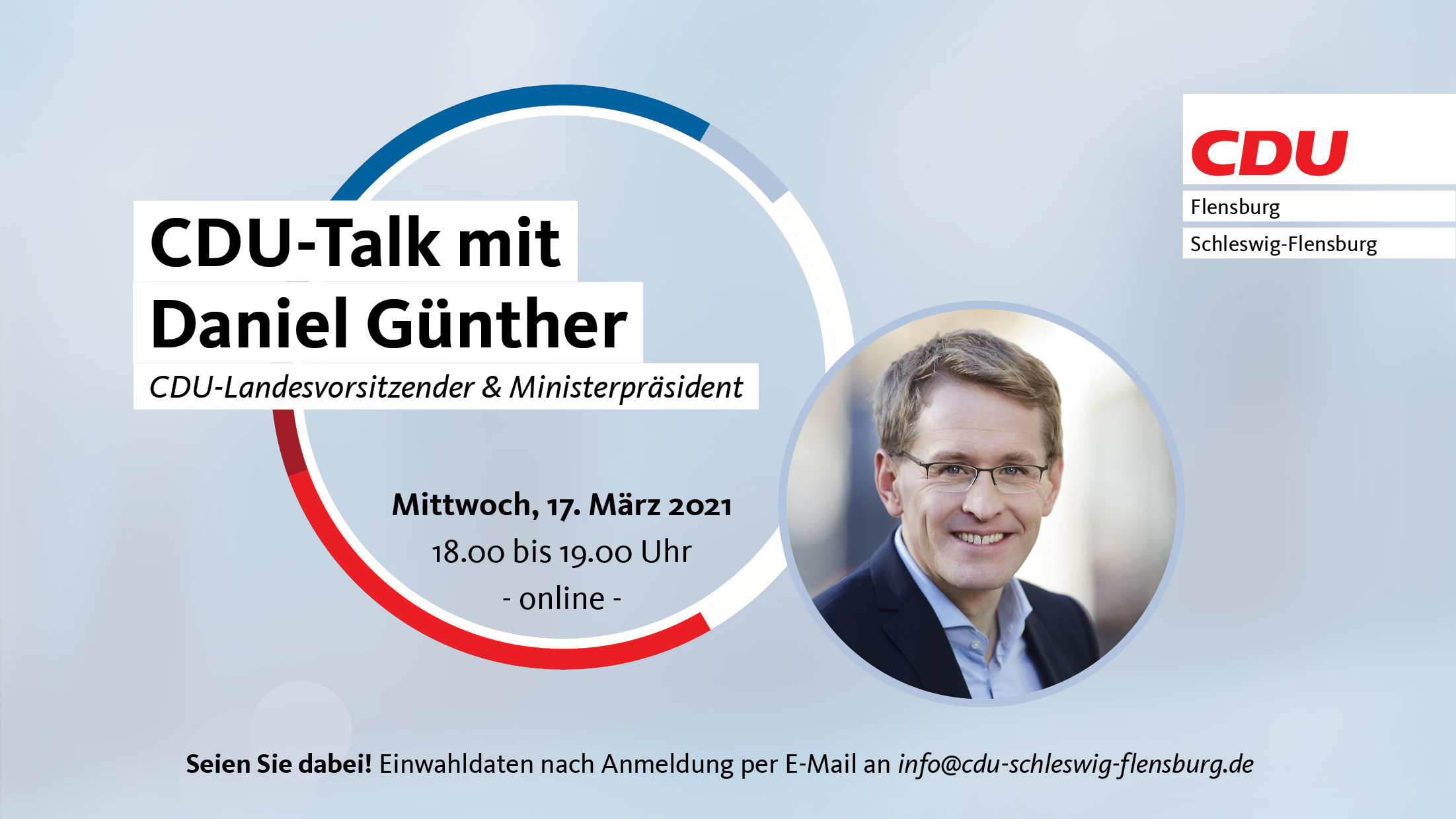 Bitte melden Sie sich an, um die Zugangsdaten zu erhalten: info [at] cdu-schleswig-flensburg.de (subject: Talk%20mit%20Daniel%20G%C3%BCnther) . Wir freuen uns auf Sie!