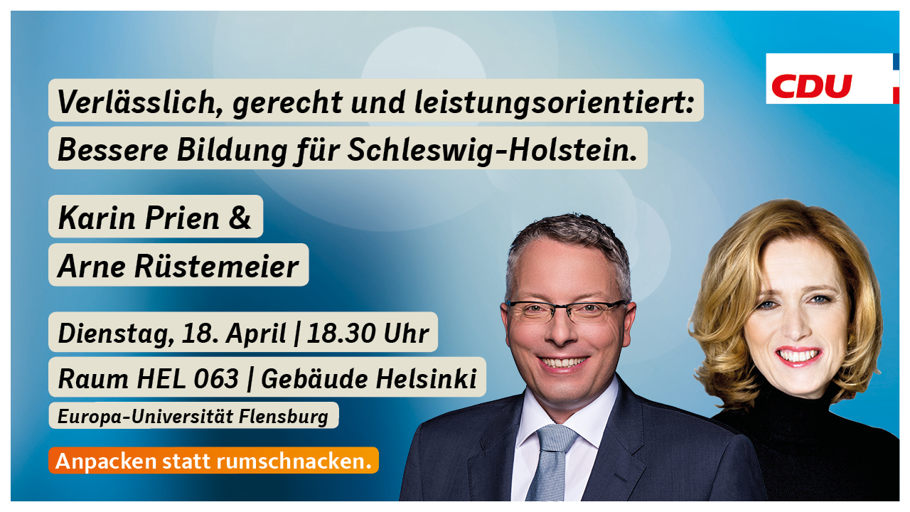 Auf Einladung unseres CDU-Landtagskandidaten Arne Rüstemeier ist die designierte Ministerin für für Bildung, Wissenschaft und Kitas, Karin Prien, zu Gast in Flensburg.